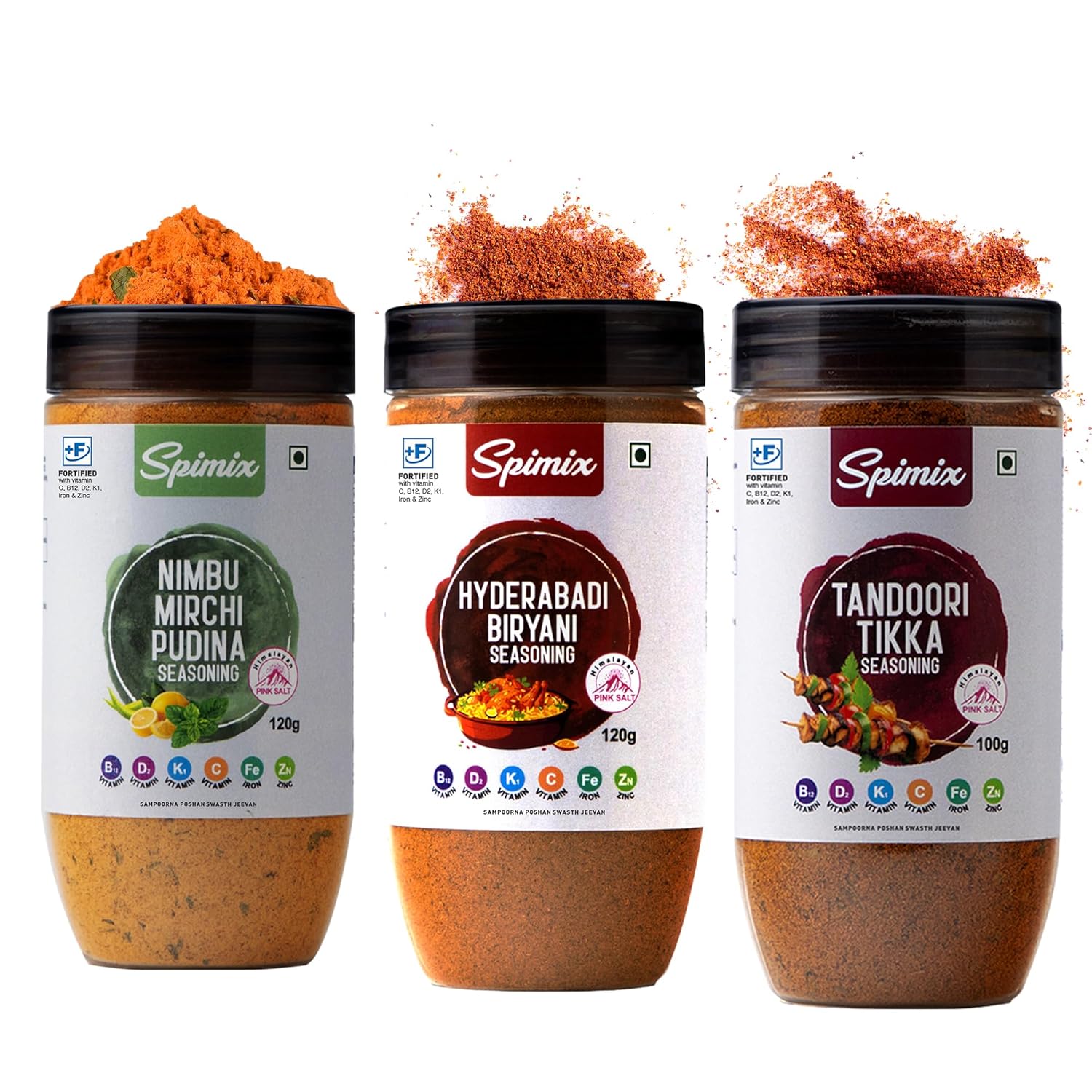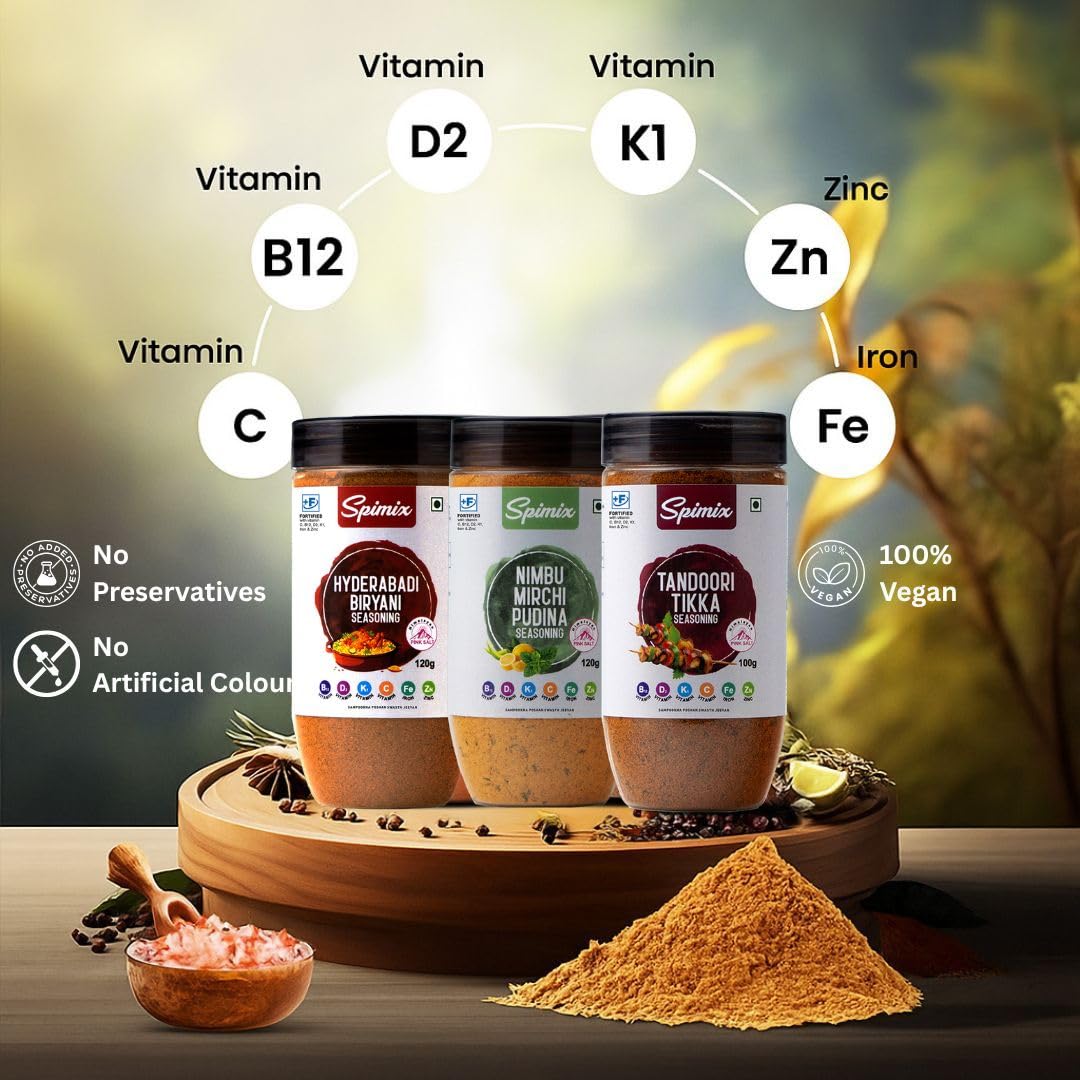 Spimix Indian Feast Combo | Hyderabadi Biryani, Tandoori Tikka & Nimbu Mirch Pudhina Seasoning with vitamins
